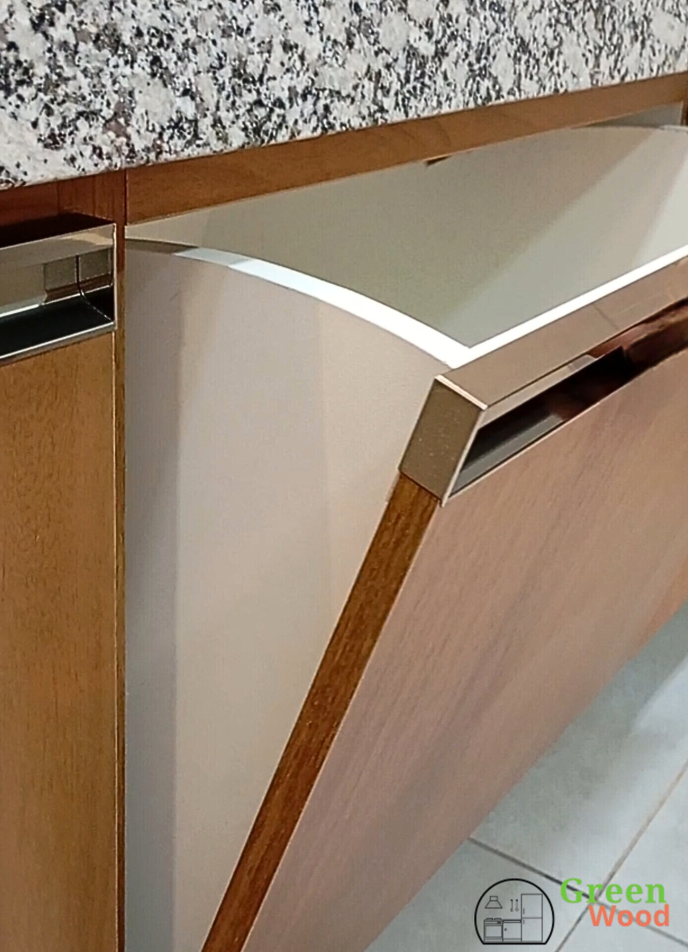 • Gabinete suspenso com 2 portas, cesto de roupas fechamento suave  e 4 gavetas
