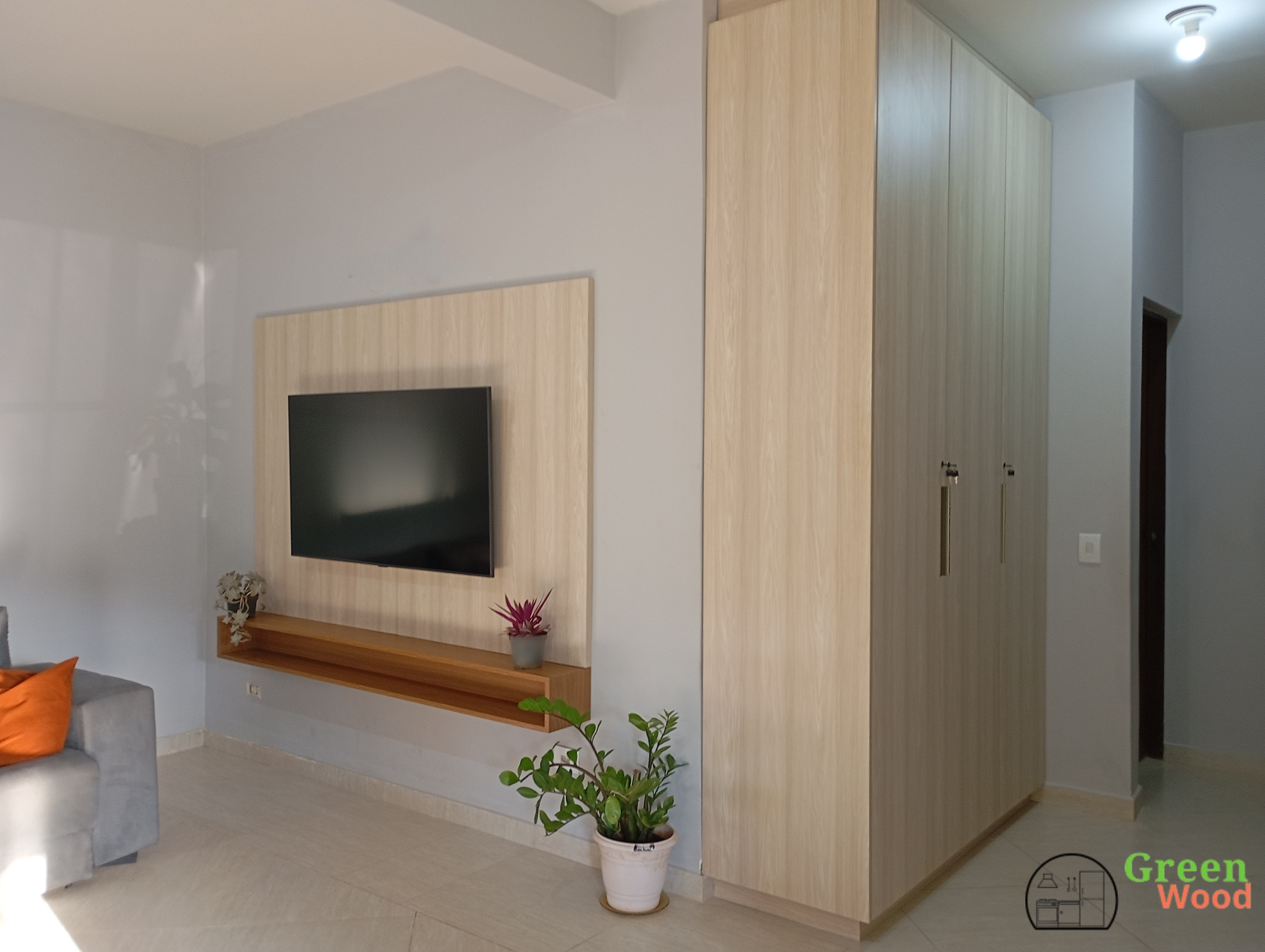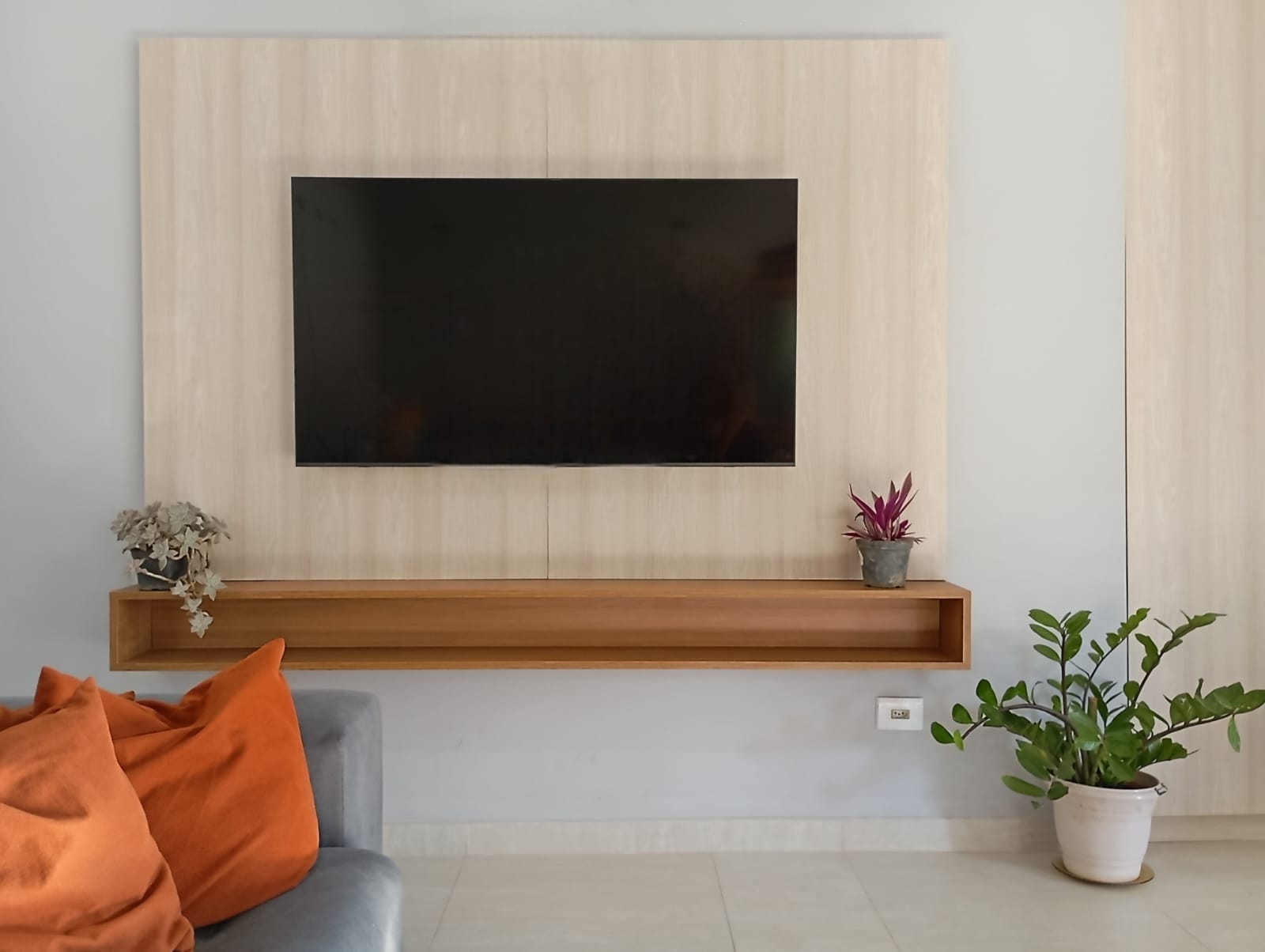 Perfeito para móveis planejados, o painel de TV amadeirado com nicho proporciona um visual acolhedor e sofisticado, ideal para salas em cidades como Mairinque, São Roque, Sorocaba, Itu e região. Combine com prateleiras, racks ou iluminação decorativa para um ambiente completo, funcional e elegante.